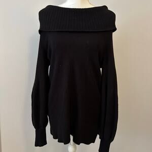 By Anthropologie Black Oversized Slouchy Off-Shoulder Sweater Blouse Top Size S
