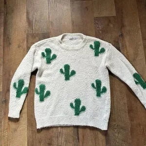 Women's Staccato White & Green Cactus Crew Neck Sweater S