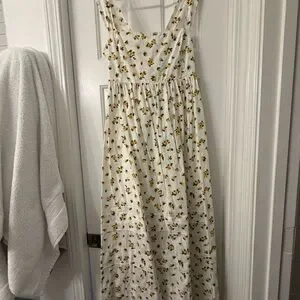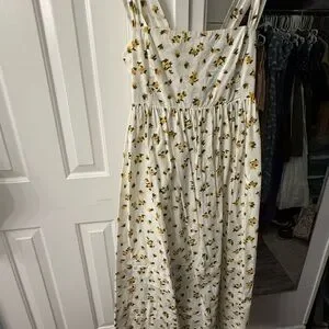 Gorgeous easy to wear, jcrew size 2 midi dress in budding rose print, yellow, green, white. Adjustable
