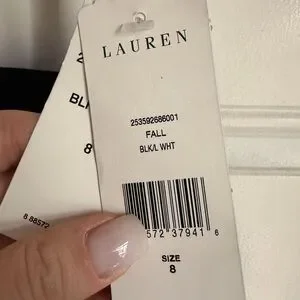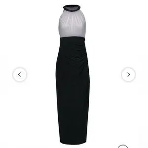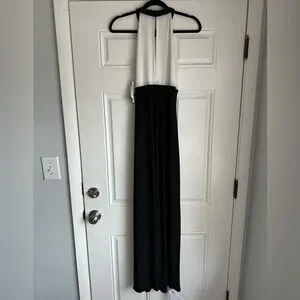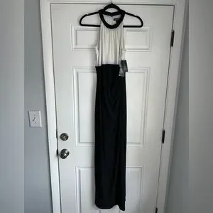 NWT LAUREN RALPH LAUREN SIZE 8 black white maxi evening gown dress beaded