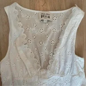 Chic white eyelet dress with scalloped edges. Perfect for outings.