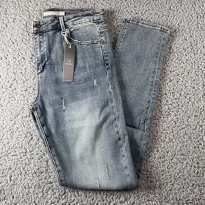 Tractr Diane Mid Rise Distressed Indigo Medium Blue Stretch Jean Sz 6/28 NWT