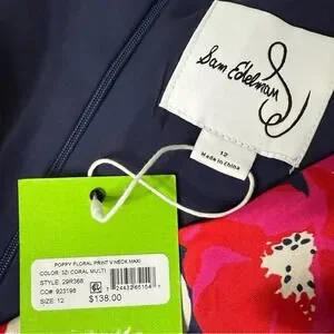 Sam Edelman Women's Poppy Floral V-Neck Chiffon A-Line Dress Coral Multi NWT