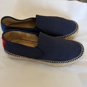 Chic navy espadrille flats with woven detail. Ideal for everyday style.