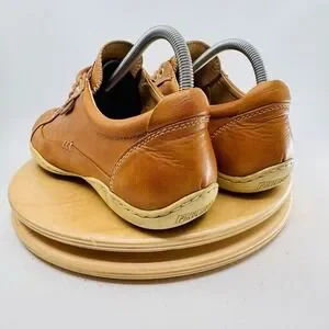 Pikolinos brown leather sneakers shoes for women, size EU 42 (US 11). Comfortable casual design with durable leather upper and lace-up closure. Great for everyday wear, walking, or travel.