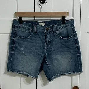 These J.Crew denim shorts are a timeless warm‑weather staple, offering a classic medium‑wash blue finish and an easy, lived‑in feel. Made from 100% cotton, they feature a traditional five‑pocket design, raw‑cut hems, and subtle fading that gives them a relaxed, effortless look. The mid‑rise fit and sturdy denim make them perfect for everyday wear—pair them with tanks, tees, button‑downs, or lightweight sweaters for endless styling options. These shorts are pre‑owned and in good condition with light wear consistent with normal use, maintaining their structure and authentic denim feel. A great addition to any casual wardrobe, especially for those who love classic J.Crew quality and simple, versatile pieces that never go out of style. Please review all photos for color, texture, and condition details.