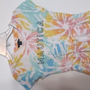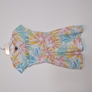 Nautica Girls Rainbow Short Sleeve Jersey Tee Dress with Elastic Cinched Waist