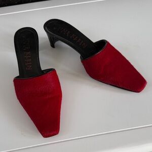 Vintage Anne Klein Collection kitten heel mules. Red pony hair. Pointed toe