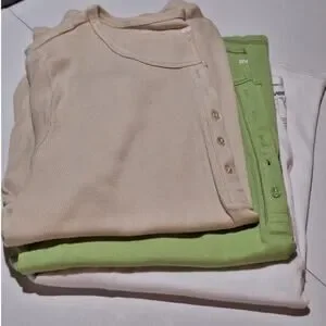 These Henley Shirts from Avenue are New with Tags. Selling all three as a set. Beige, Lime Green, and White. Classic Short Sleeve Henley. 100% Cotton. Women's Size 3X 22/24.