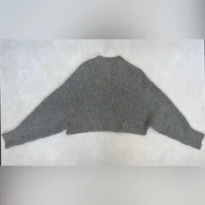 Beautiful Wilfred Free Lolan Cropped Sweater from Aritzia in a soft heather gray alpaca-blend knit. This cozy sweater features a relaxed oversized silhouette with dolman sleeves and ribbed cuffs for a modern minimalist look. The fuzzy alpaca texture gives it a luxe feel while still being lightweight and comfortable.