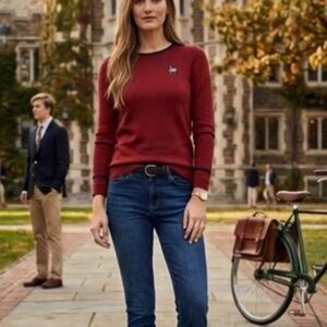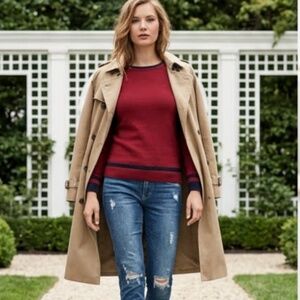 Elevate your everyday wardrobe with this Giorgio Di Mare Classic Knit Pullover. Combining timeless European style with premium comfort, this 100% cotton sweater features a rich bordeaux hue accented by nautical navy trim. Whether you're heading to a casual lunch or layering for a breezy evening, this versatile piece offers a flattering fit and sophisticated flair. Brand new with tags and ready for a new home.