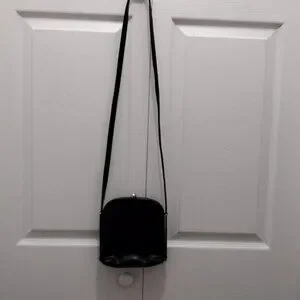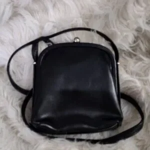 MB Vintage Style Black Crossbody Bag Kiss Lock Clasp Mini Purse