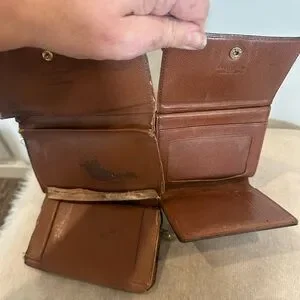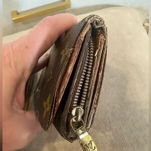 The wallet with the zipper & zipper pull in tact is completely worn at the edges.