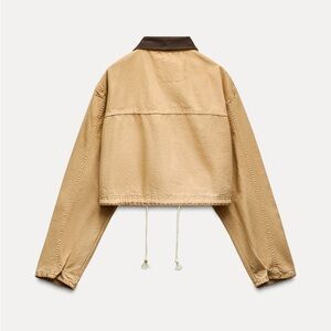 ZARA CONTRASTING COLLAR CROP JACKET XS 5520/071 BARN CHORE COAT FALL VIRAL