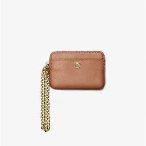 This card case is a stylish and practical day-to-dark accessory. Made from Saffiano leather, it features a convenient ID slot, front slip pocket and zipped compartment sized to safely store smaller essentials. We love how the chain-link wristlet strap adds a luxe and functional finish.