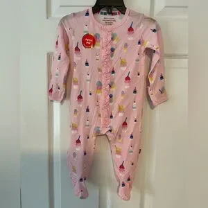 MAGNETIC ME Sundae Funday With Ruffle Detail Footie Pajamas | Pink