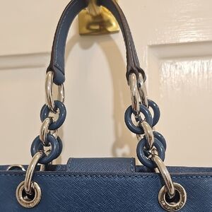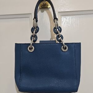 Michael Kors Navy Shoulder Bag with Silver Accents