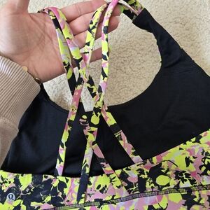 EUC Like New Size 14 Size Dot Confirmed Lululemon Energy Bra in the "Inflect Floral Highlight Yellow Multi" colorway. Style Number: W2DHIS Voted most likely to be worn multiple times a week. This all-sport bra is a favourite for comfort and versatility. Luxtreme® Is sweat-wicking, four-way stretch, and engineered not to shrink Features Designed for: Training Medium support: Intended to provide medium support for a B/C cup Lycra®: Added Lycra® fibre for shape retention Coverage: Pockets for optional, removable cups smoke and pet free environment