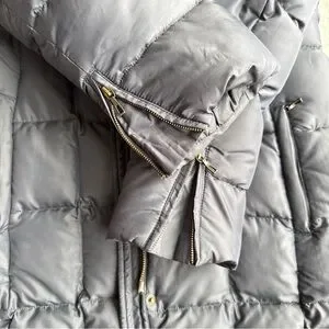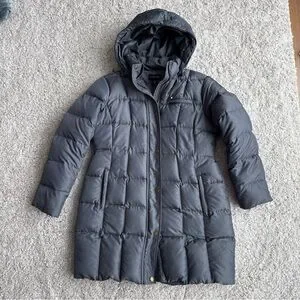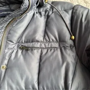 Lands’ End Gray/Blue Long Down Puffer Coat Hooded Winter Parka Women M 10-12