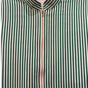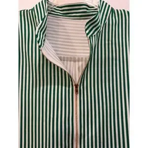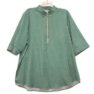Unbranded Green White Striped Half Zip Short 1/2 Sleeve Tunic Blouse Womens 2XL