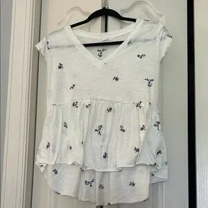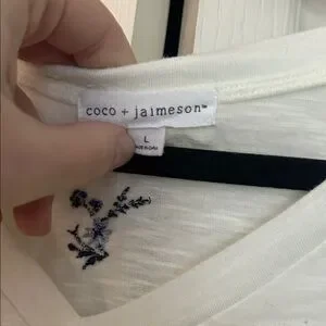 Elevate your wardrobe with this elegant white blouse featuring delicate floral accents. Perfect for both casual and formal settings.