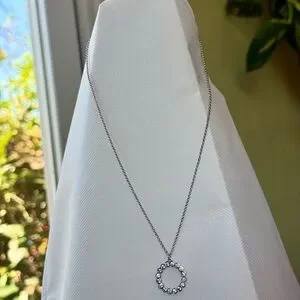 Elevate your everyday look with this stunning, Kate Spade New York Full Circle (3/4 inch) Pendant Necklace with dust bag. This elegant piece features a circular pendant adorned with shimmering clear cubic zirconia stones, offering a timeless and sophisticated sparkle.