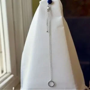 The necklace is crafted from high-quality silver-plated metal and comes with its original pink Kate Spade dust bag, making it perfect for gifting or safe storage.