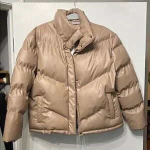 Steve Madden Taupe Faux-Leather Quilted Puffer Jacket