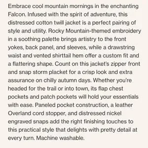 NWOT Overland Falcon Embroidered Utility Jacket - Distressed Slate - Women’s S