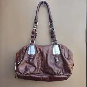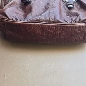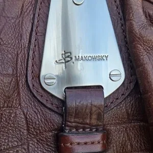 B. Makowsky Brown Leather Hobo Snake Animal Skin Shoulder Bag