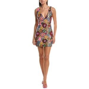 About the brand: Silk fabrics, lively colors, and sophisticated silhouettes. Aera Dress in flame combo with sequin embellishments, and V-neck E05253006 Approximately 32in from shoulder to hem Model is 5'9 and is wearing a size 4. Measurements may vary slightly by size. Center back zip with hook-and-eye closure 95% polyester, 5% elastane Lining: 92% polyester, 8% elastane Dry clean only Imported