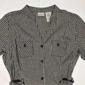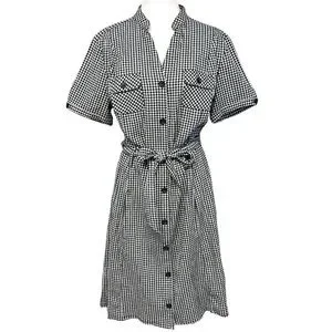 White Stag Gingham Plaid Seersucker Button Shirt Dress Tie Waist Cottage Country