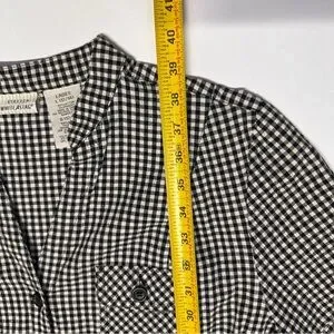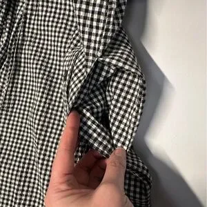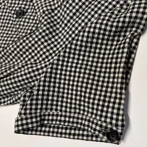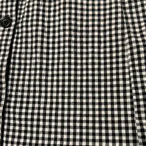 Seersucker textured material with black and white gingham plaid pattern