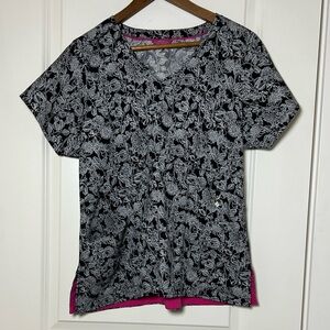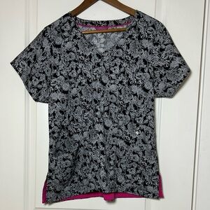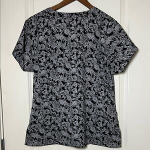 Vera Bradley Scrubs Short Sleeve Top Black White Floral Medium