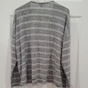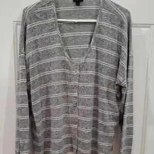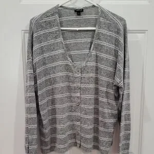 Chic gray stripe sweater faux buttons. Soft fabric with subtle stripes. Ideal for layering. Size 2 Torrid