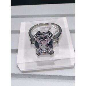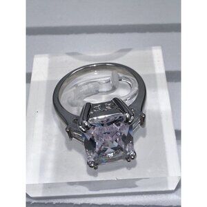 Silver Plated Cubic Zirconia Princess Cut Ring Size 9