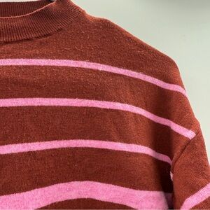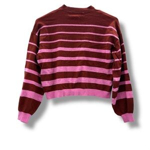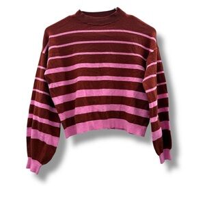 Vero Moda Burgundy & Pink Striped Crewneck Long Sleeve Cropped Sweater Sz XS