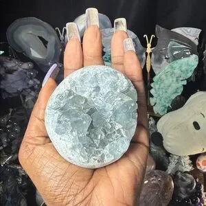Beautiful raw blue Celestite crystal stone. Perfect for collectors and enthusiasts. Approximately 4” top to bottom. 6” circumference.
