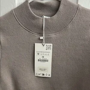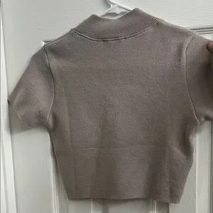 Soft ribbed knit. Short sleeves and mock neck. Cropped hem for a modern fit. Neutral taupe color pairs easily. Really cute, brand new. Too small for me. It’s more cropped than I thought.