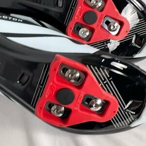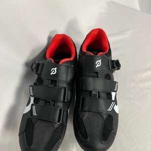 Peloton Black White Cycling Shoes with Red Cleat Accent