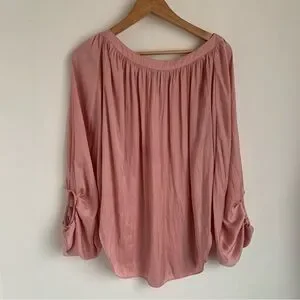 Revolve Smythe + TNT Blush Pink Ruched Balloon Sleeve Butterfly Blouse Sz M
