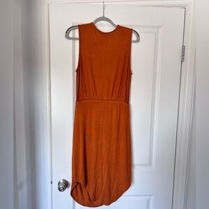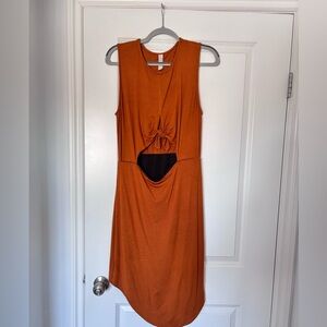 Eve Gravel Sleeveless Knot Front Cutout Midi Dress in Rust Orange