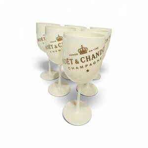 6 Vintage Moet & Chandon Ice Imperial Cream & Gold Acrylic Champagne Goblets
