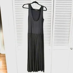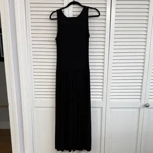 Elegant sleeveless maxi with a drop waist, low back, and flowing pleated skirt. Smooth, lightweight fabric for easy movement. Minimalist design suitable for day or evening wear. Fabric is extremely soft and comfortable.