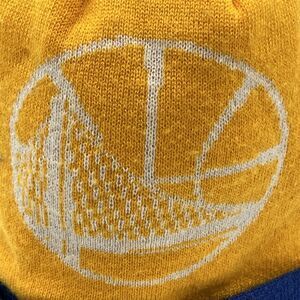 Golden State Warriors Adidas NBA Basketball Pom Pom Knit Hat Beanie Blue Gold