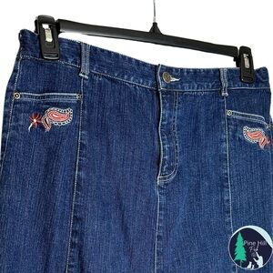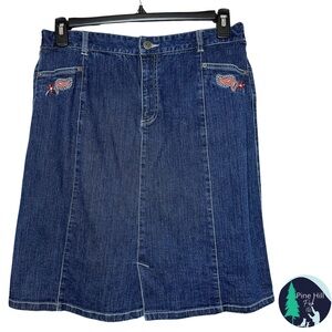 Sag Harbor Dark Blue Denim A-Line Skirt with Red Embroidery