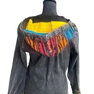 This vibrant women's jacket features intricate embroidery and a mix of colors, perfect for adding a pop of style to any outfit. The unique design is both eye-catching and versatile.