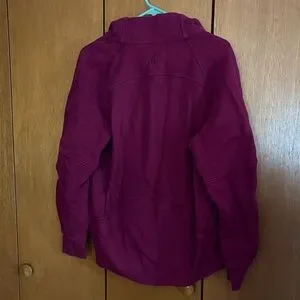 Cozy fleece zip hoodie in deep maroon. Full zipper with attached hood. Front pockets for hands. Simple everyday layering piece.