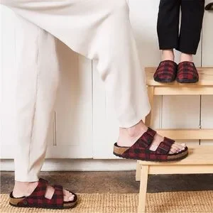 The popular BIRKENSTOCK Arizona is a classic model with two adjustable straps. Featured in a cozy wool plaid with bright genuine shearling lining on the anatomically formed cork-latex footbed. These sandals are perfect for chilly, winter evenings.The upper is made from soft wool.