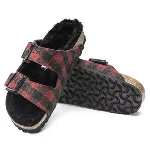 Arizona Rivet Shearling Sandals RED PLAID Wool